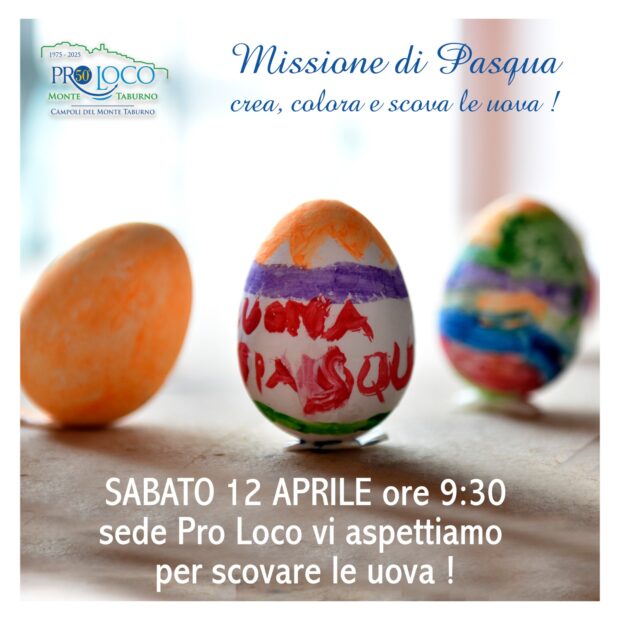 Sabato scorso si è dato il via alla missione che ha accolto i bambini nella sede della Pro Loco, dove dalle 10 del mattino e per le successive due ore, la creatività ha fatto da co-protagonista accompagnandoli nella decorazione delle uova e involontariamente anche dei bambini stessi, che si sono trovati pieni di colori a tempera.